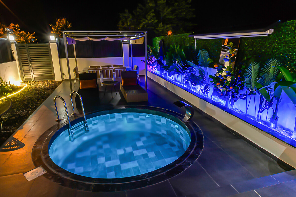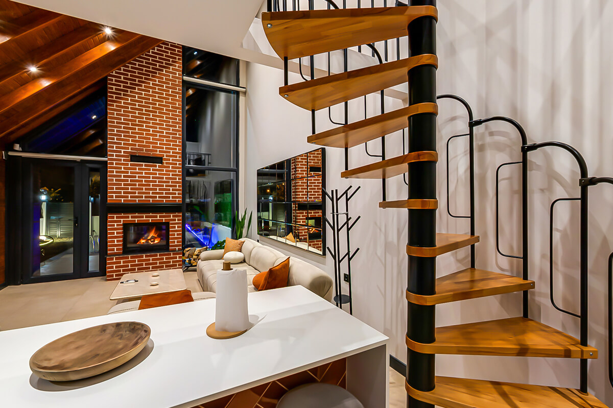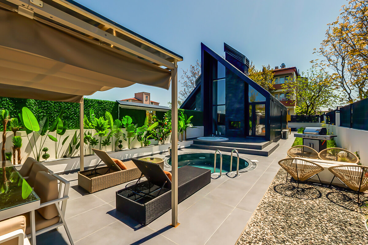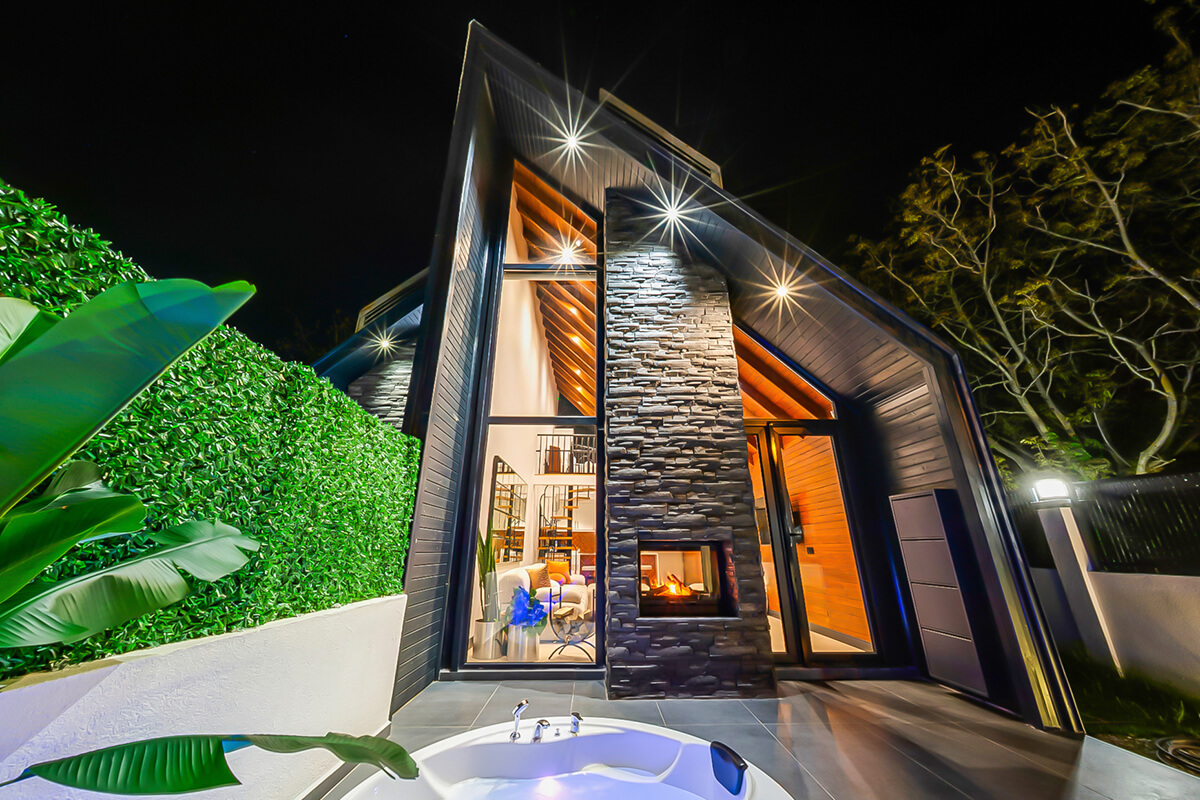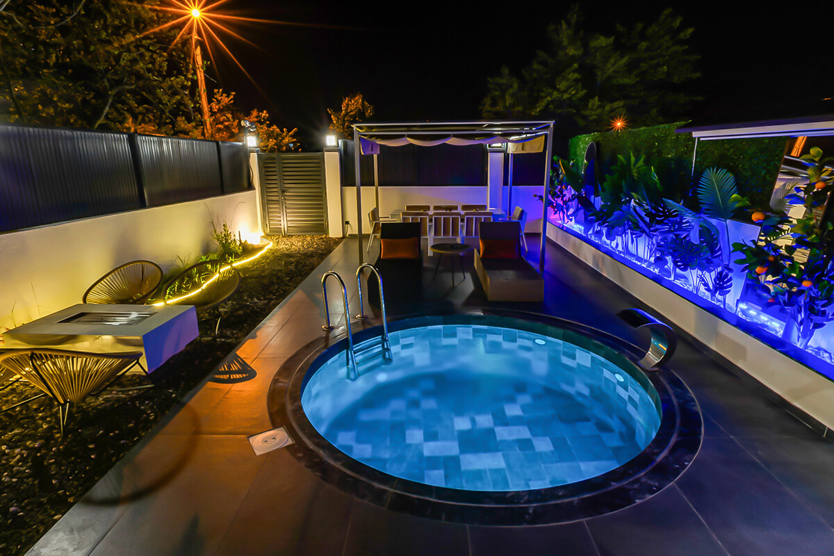 Salon, jakuzi alanı ve bahçeye erişimi olan ortak alanları ısıtan çift taraflı bir şömine bulunmaktadır. Bu özellik, geniş bir alanda sıcak ve keyifli bir atmosfer yaratmaktadır.