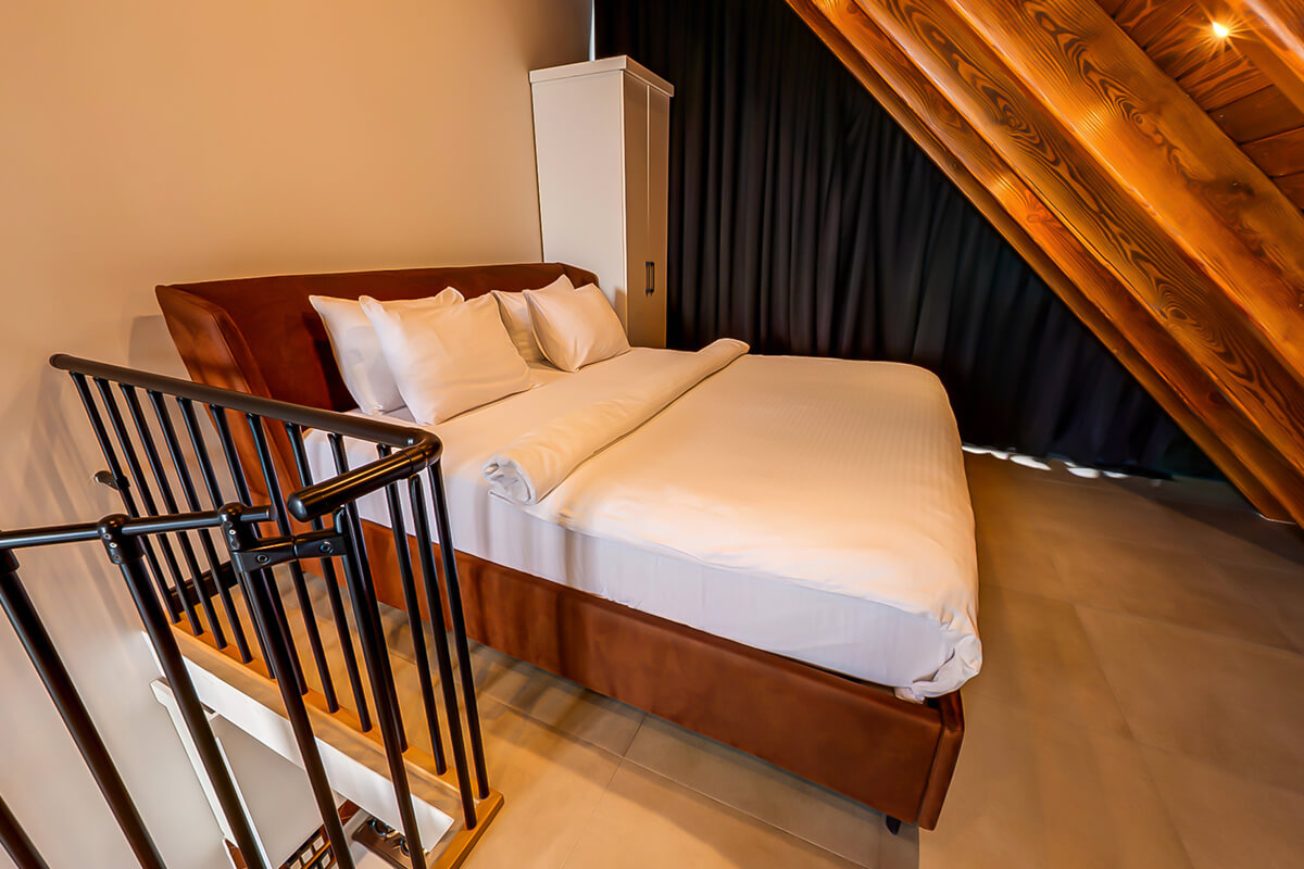 Tesis, maksimum altı misafir ağırlama kapasitesine sahiptir. Üst katta king-size çift kişilik bir yatak bulunmakta olup, alt katta ise kolaylıkla yatağa dönüştürülebilen geniş bir koltuk takımı mevcuttur. Daha kalabalık misafir grupları için ilave yataklar kullanıma sunulmaktadır.