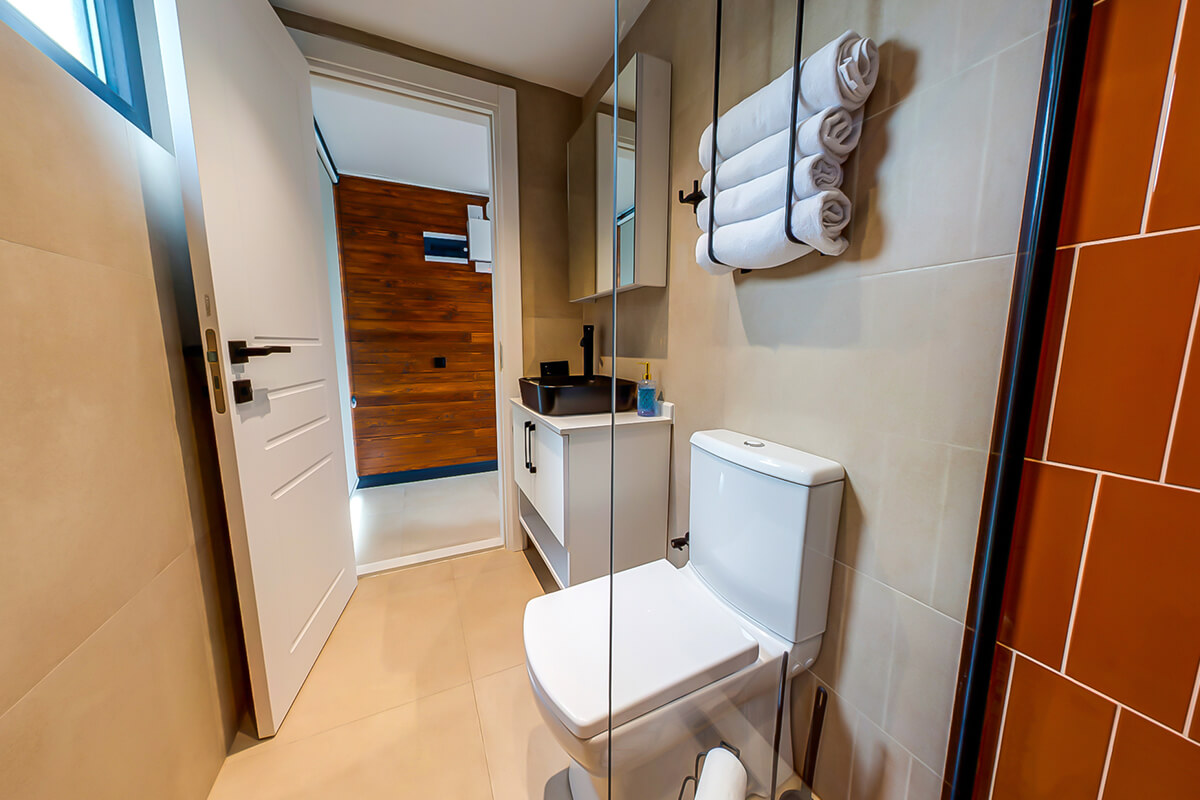 Banyolarda şampuan, saç kremi, duş jeli ve temiz havlular standart olarak sunulmaktadır. Ayrıca saç kurutma makinesi de mevcuttur. Kesintisiz sıcak su imkanı ile konforlu bir kullanım sağlanmaktadır.